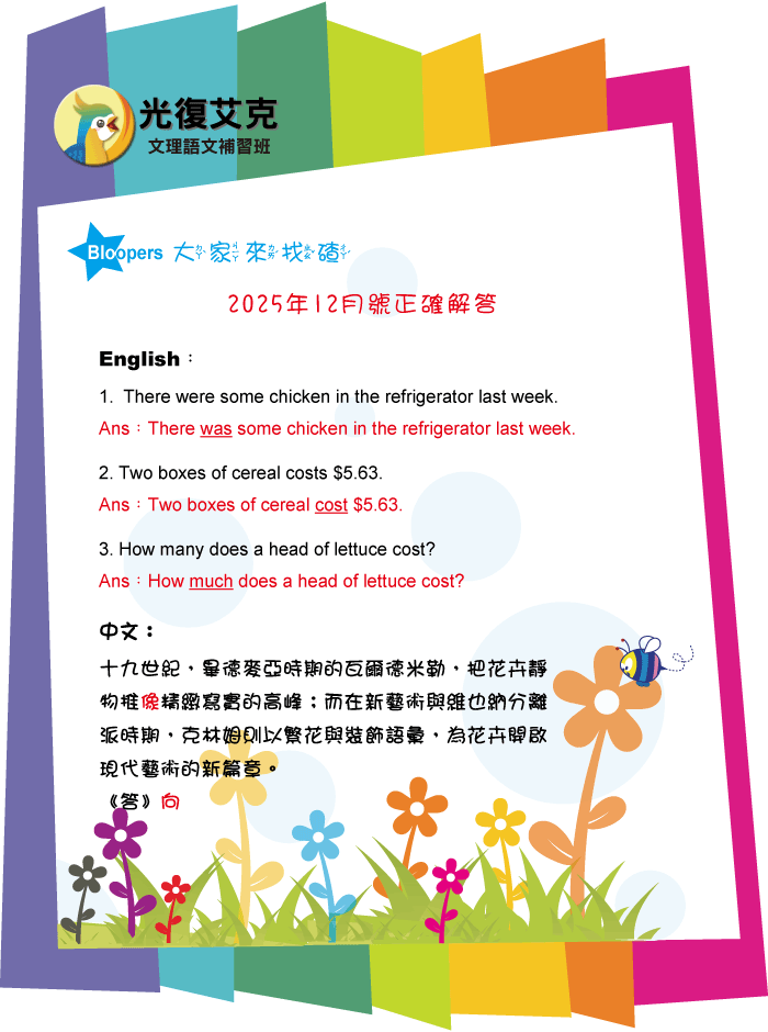 光復艾克 電子月刊『大家來找碴』2025年12月號正確解答公布!小朋友找出來了嗎?