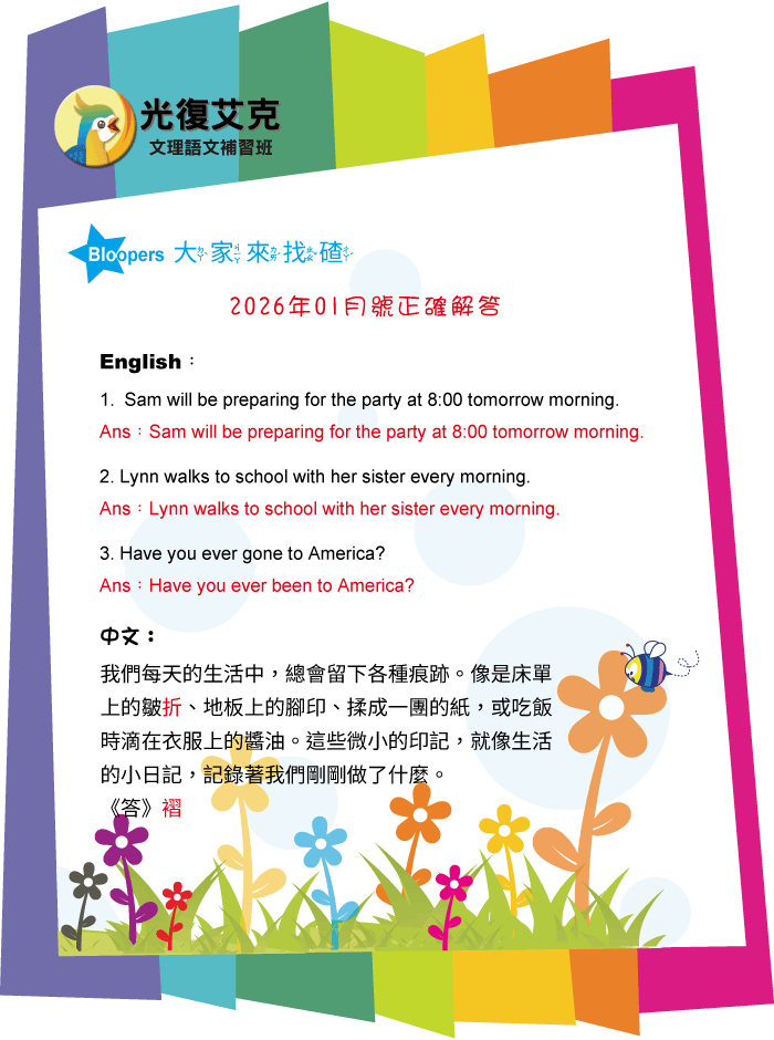 光復艾克 電子月刊『大家來找碴』2026年1月號正確解答公布!小朋友找出來了嗎?